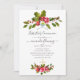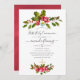 Vintage red flowers, holly and berries christmas first communion invitation designed to be quickly and easily customised to your event specifics.