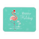 Stylish design with a retro touch featuring a festive pink flamingo wearing a red Santa hat, stars and palm trees decorated with baubles set against an aqua background. A customisable design for you to personalise with your own text, images and ideas. An original digital art image created by Quirky Chic.