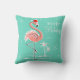 Stylish design with a retro touch featuring a festive pink flamingo wearing a red Santa hat, stars and palm trees decorated with baubles set against an aqua background. A customisable design for you to personalise with your own text, images and ideas. An original digital art image created by Quirky Chic.