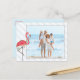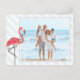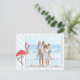 This design features Christmas holiday watercolor modern, festive pink flamingo string lights, a chic party celebration celebrate, cute whimsical colourful merry, simple minimalist typography font, elegant whimsical calligraphy script, tropical beach coastal holiday Florida, with a colourful Xmas let's flamingle saying, hand-drawn classic budget postcard, artwork by laura lacina