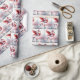 A flamingo with outstretched wings is wearing a Santa hat and red scarf gracefully ice skating.
