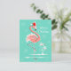 Stylish design with a retro touch featuring a festive pink flamingo wearing a red Santa hat, stars and palm trees decorated with baubles set against an aqua background. A customisable design for you to personalise with your own text, images and ideas. An original digital art image created by Quirky Chic.