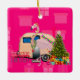 christmas flamingo trailer ceramic ornament