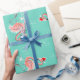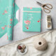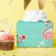 Stylish design with a retro touch featuring festive pink flamingos wearing red Santa hats, stars and palm trees decorated with baubles set against an aqua background . A customisable design for you to personalise with your own text, images and ideas. An original digital art image created by Quirky Chic.