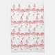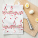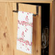 Flamingos dressed in Santa hats and boots decorate this kitchen towel for Christmas.