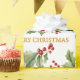 A Christmas seamless pattern wrapping paper featuring watercolour holly and red berries with " Merry Christmas" text.