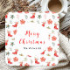 Christmas Floral Red Ice Skates Merry Christmas Square Paper Coaster
