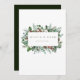 This stunning Christmas foliage pine cone save the date wedding card features holiday greenery with a faux gold frame on a modern white and green background.