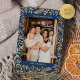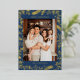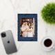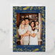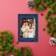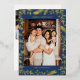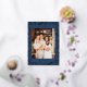 Christmas Folk Floral Photo Navy Blue Gold Foil Holiday Card