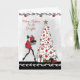 Modern Christmas card for daughter featuring a stylish lady dressed in red with high heels carrying gifts towards a pretty white Christmas tree. Graphics courtesy of Crave Designs.