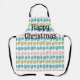 This apron has a mid-century modern Christmas design of four lines and a Christmas tree in pink, green, and turquoise repeating across the design. Like the design but want different colours? Message me.