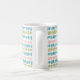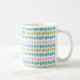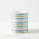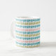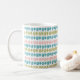 This mug has a mid-century modern Christmas design of four lines and a Christmas tree in pink, green, and turquoise repeating across the design. Like the design but want different colours? Message me.