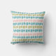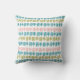 This throw pillow has a mid-century modern Christmas design of four lines and a Christmas tree in pink, green, and turquoise repeating across the design. Like the design but want different colours? Message me.
