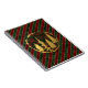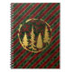 Custom Christmas holiday notebooks featuring festive red, green, and gold velvet stripes with gold forest design.