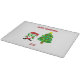 Here you can admire one of Christmas drawings, I call, "Christmas FrankenCheese," FrankenCheese dressed up as Santa, with a decorated Christmas tree, text says, "Merry Christmas." You can now order, "Christmas FrankenCheese," on this cutting board to wish someone a, Merry Christmas." This cutting board is (38.1 cm x 27.9 cm).