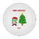 Here you can admire one of Christmas drawings, I call, "Christmas FrankenCheese," FrankenCheese dressed up as Santa, with a decorated Christmas tree, text says, "Merry Christmas." You can now order, "Christmas FrankenCheese," on this round cutting board to wish someone a, Merry Christmas." This round cutting board is (30.4 cm).