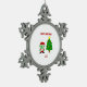 Here you can admire one of Christmas drawings, I call, "Christmas FrankenCheese," FrankenCheese dressed up as Santa, with a decorated Christmas tree, text says, "Merry Christmas." You can now order, "Christmas FrankenCheese," on this snowflake ornament to wish someone a, Merry Christmas."
