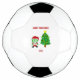 Here you can admire one of Christmas drawings, I call, "Christmas FrankenCheese," FrankenCheese dressed up as Santa, with a decorated Christmas tree, text says, "Merry Christmas." You can now order, "Christmas FrankenCheese," on this soccer ball to wish someone a, Merry Christmas."