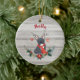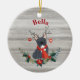 Rustic Christmas French Bulldog Dog Antlers Greenery Ceramic Ornament Will be the highlight of your tree. A playful French Bulldog wearing ornaments on his pretend antlers looks up as if he is watching for Santa. Beautiful hand painted holiday greenery holly, pine and poinsettia in Christmas reds and greens decorate the bottom of the ornament.All of this on a grey rustic wooden texture background. Change the dog's name to your pup's. The back of the ornament has a wreath of the same greenery on a texture of grey kraft paper and has the saying "Happy Howlidays and also "the Anderson Humans" and the year to edit and make it your own . This text as well as all of the text on this ornament is editable with the personalise tool. Make your French Bulldog proud and get several of these to sprinkle around your tree. This ornament as well as matching napkins and paper plates for your holiday parties are in our "HAPPY HOWLIDAYS DOG" COLLECTION in our store.