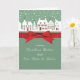Send this sweet card from your to home to another. White houses and Christmas tree line the card, with snowflakes dotting the green background. A large red bow wraps the card, giving a festive holiday look. This card does not come with an actual ribbon and is printed flat.