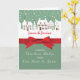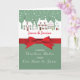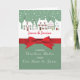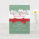 Send holiday greetings from your home to theirs. A light green background shows the white homes in a row. Personalise the card with your name under the homes. A festive red ribbon is in the centre of the card. Wrap up this Christmas as you send these delightful greetings! This card does not come with an actual ribbon and is printed flat.