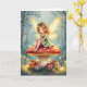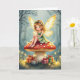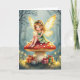 A pretty .little fairy sitting atop a whimsical mushroom covered in Christmast lights and surrounded by gifts. Inside is a sweet holiday poem with a cottage core Christmas vibe.