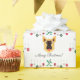 This German Shepherd Christmas design features my watercolor cartoon with digital ornaments, mistletoe and text added.