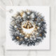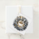 This gift tag is shown with a festive holiday wreath print in colors of silver and gold.