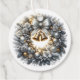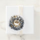 This gift tag is shown with a festive holiday wreath print in colors of silver and gold.