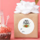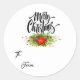 This Christmas gift tag sticker is shown with a festive holiday poinsettia print.