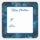 This Christmas gift tag sticker is shown with a festive holiday blue snowflakes print.