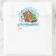 This Christmas gift tag sticker is shown with a festive holiday Santa and the gang print.