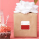 Send your holiday gifts with these elegant customised gift tags featuring a Christmas tree art design on a red background with a white stripe across the top.