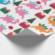 CHRISTMAS GIFT WRAP WITH DINOSAURS WITH SANTA HATS