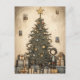 Cute cosy illustration from a huge decorated Christmas tree and presents under it.