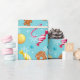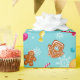 Wrapping paper with gingerbread men, gingerbread houses, candy canes, and hard candies.