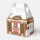 Cute brown bakery with gingerbread girl on front, reindeer on back, teddy bear and snowman characters on either side. Bakery sign on front flap with a custom name template. Rick rack icing and peppermint candies adorn outside. Perfect for cookie exchanges!