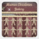 On this festive sticker are rows of gingerbread cookies on a burgandy lacy backdrop with personalisation at the top of the design with added sparkle for extra glam. Fun cheery christmas theme for baking in the kitchen