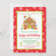 Cute Christmas Gingerbread House Winter design with christmas lights, sweets and snowflakes background.