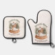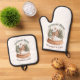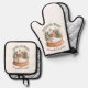 Christmas Gingerbread House Holiday Snow Globe Oven Mitt & Pot Holder Set