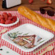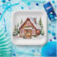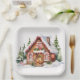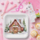 Watercolor Christmas gingerbread man and house with candy canes in snowflakes