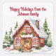 Watercolor Christmas gingerbread man and house with candy canes in snowflakes.