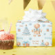 Christmas wrapping paper with a cute gingerbread man, Christmas tree, gifts and snowflakes for babies and little boys with the name and two other different texts, easily personalise them. The light blue background. - Kate Eden Art