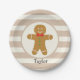 Cool, retro, colourful kid's Christmas Gingerbread Man, brown, red, green design on white stripes, striped pattern with vintage feel. Perfect gift for baby, toddler, kids, children, teens, or adults! Personalised the design by adding a child's name or custom text. Visit our store, Birthday Party House, for more great customisable boy and girl products!