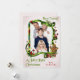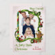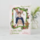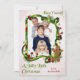 Festive and Fun ribbon border, berries and cute gingerbread Soft shell pink background. This Christmas card has cut out area for your photo upload. Front text on this Christmas flat card says Have Yourself A Jolly Little Christmas. Customise name text area. Card back has matching pink theme and Ginger man accent.