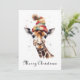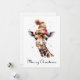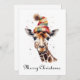 watercolor painting of a giraffe with a knit winter hat in christmas style