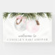 Christmas Girl baby shower party welcome banner designed with pink and white watercolor Christmas ornaments. All lettering is editable - click the "Customise Further" button to edit. Matching items in our store Cava party design