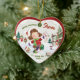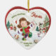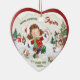 An adorable little girl named Holly is on her way to post her Santa letter. She is accompanied by her friend a tiny robin as she skips through a gorgeous snow scene surround by other animals. This cute heart shaped ceramic ornament for a little girl can be personalised with the childs name on the front and your name and message on the back. Holly and Robin are the main characters from the delightful picture book (I've an idea) by Carol M. Kearns which is available online. Greeting cards and other products to match this ornament can be purchased here.