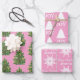 Christmas Girly Pink & White Pattern Wrapping Paper Sheet