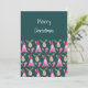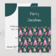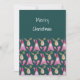 Christmas Gnome And Reindeer In Green Pink Holiday Card